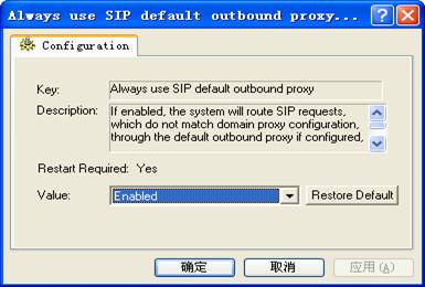 详细说明:如果启用,系统将发送SIP信令协议请求,若有不相匹配的代理配置,即使在目标URI的主机部分,IP地址是指定,仍然通过已配置的默认外呼代理。