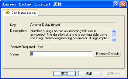 调试Answer Delay (rings)里的值,设置延迟值,如下: