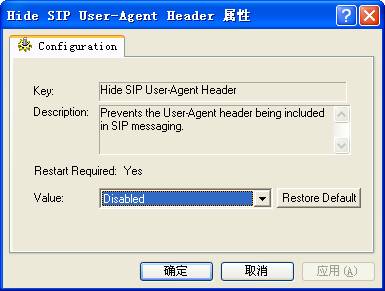 详细说明:阻止用户代理消息头被列入SIP信令消息中。