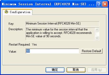 详细说明:会话的时间间隔有应用程序愿意接受的最小值。RFC4028建议最小Min-SE值为90秒。