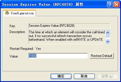 详细说明:如果事先没有成功刷新事务,就被作为超时呼吁。当用reINVITE或UPDATE的LCA的类型启用时,这个值就插入到每个INVITE和UPDATE事务的RFC4028会话过期标头,除非它被配置为0。