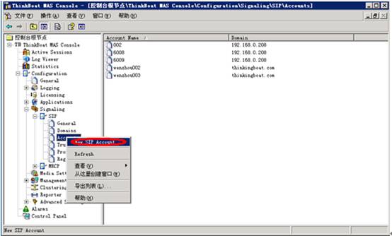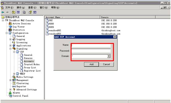 进行SIP的帐号注册,添加用户,设置其密码并指定该帐号所属的域(是指自己所注册的服务器上):
