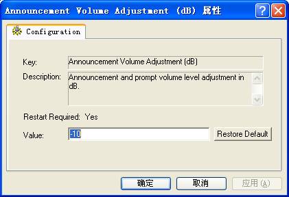 请输入电话通告语音的音量调整,默认值:-10(分贝)。