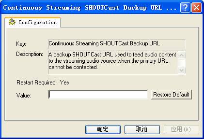 详细说明:当主要的URL不能连接时,备份SHOUTCast用来作为音频流来源提供音频内容。