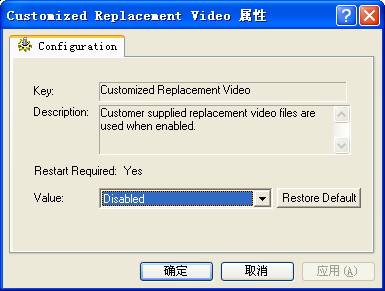 请输入是否使用客户化的替代视频文件,默认值Disabled。