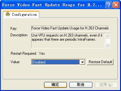 请输入是否强制视频快速更新H.263的通道,默认值Disabled。
