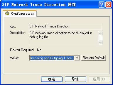 请输入SIP网络跟踪方向,默认值Incoming and Outgoing Trace Enabled。