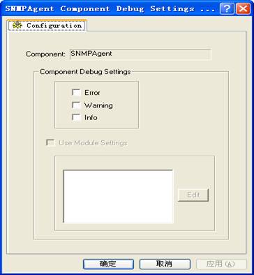 请调试系统软件的组件SNMPAgent设置,错误、警告或者信息。