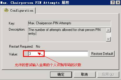 调试Max. Chairperson PIN Attempts的值,如下: