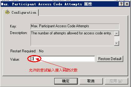 调试Max. Participant Access Code Attempts的值,如下: