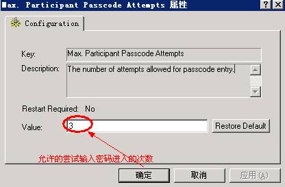 调试Max. Participant Passcode Attempts的值,如下: