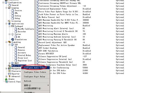 媒体的属性,首先要允许所支持的音频编码通过,然后可以对其进行顺序的变化,再选择通过的时间,默认的是20