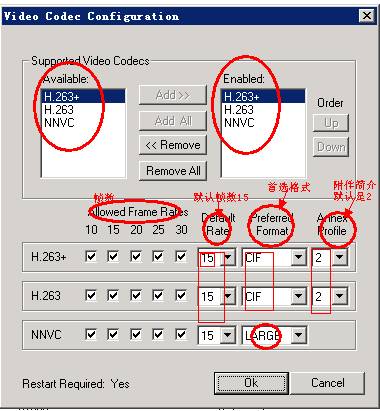 首先要允许所支持的音频编码通过,然后可以对其进行顺序的变化,再选择通过的的帧数,默认的是15,然后是首选的格式H.263、H.263+默认选择的是CIF格式,附件简介默认是2,NNVC默认的帧数也是15,选择的格式是LARGE