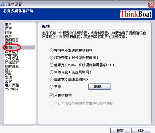 ,然后在点击定制后面的配置或者把下面的只接受视频给勾选,将进入如下: