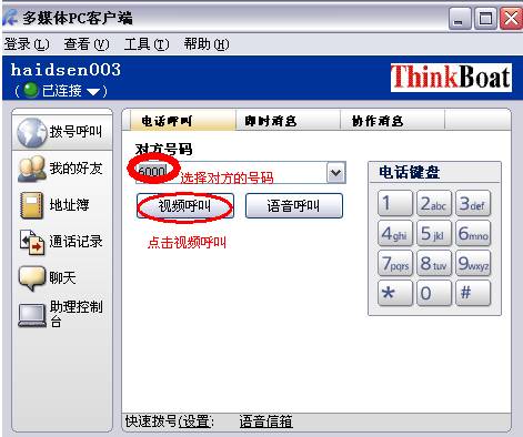 然后就可以拨号进行视频呼叫