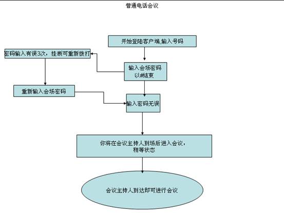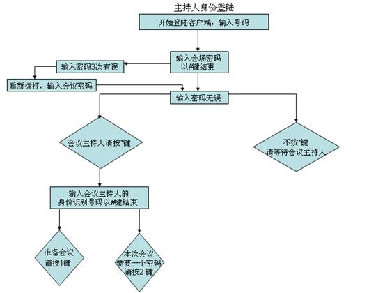 如下图,主持人身份登录与普通用户身份登录进入会议的流程图: