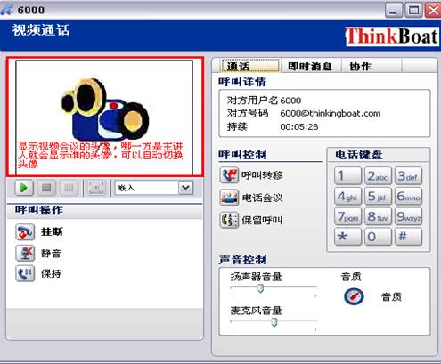 呼叫完成后就可以进入视频会议界面,如下图: