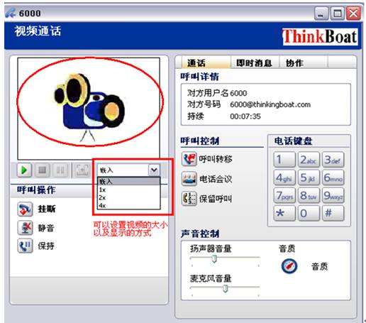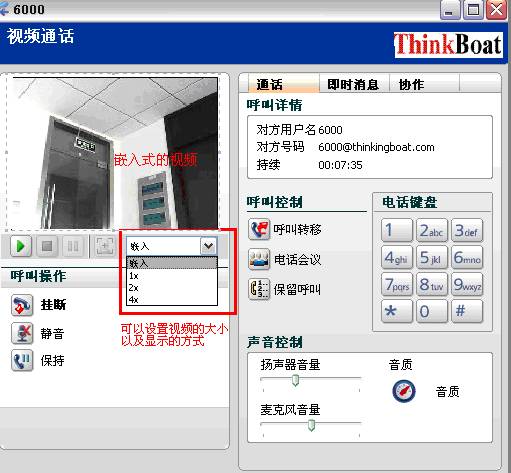 1x,2x,4x,分别是设置视频的大小,4X是最大的显示效果,可以显示远端的视频的大小,而不再是嵌入的,而是浮出的窗口: