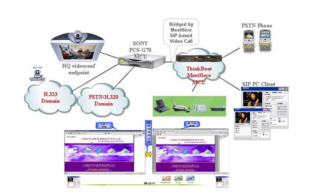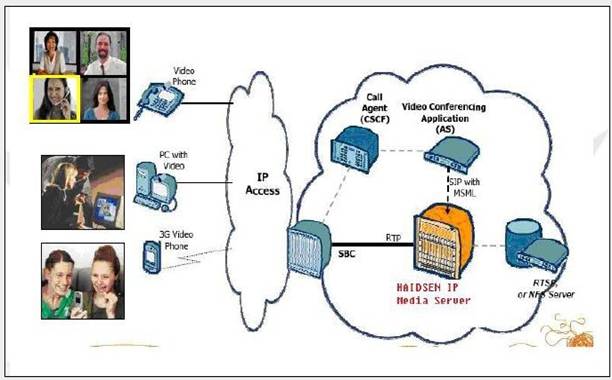 下图为电信运营商中的手机视频会议部署结构图: