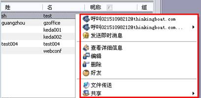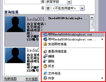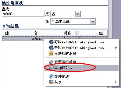 当我们在地址簿里查找到的用户,直接右击就哭添加为联系人,如下图: