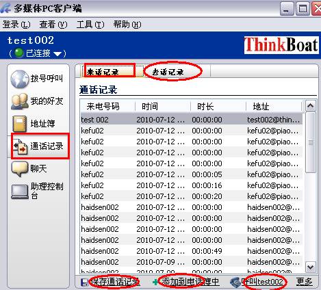 我们也可以查看通话记录,如下图: