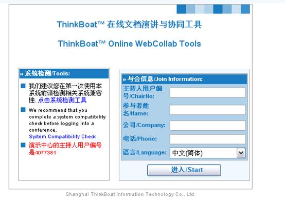 然后输入主持人的用户编号、参与者姓名、公司等。输入完成后点击