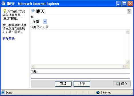 由于演示者和与会者是聊天会话的参与者,因此所有问题和答案都将显示在“聊天历史”窗口中。 如果要将聊天会话记录存储为文本文件,请在聊天会话结束后单击“保存”。