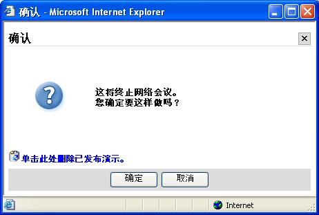 “确认对话框”上的链接用于删除结束前任何剩余的已发布文档。 会议停止之后,帐单会随即停止,并且所有参与者也会断开会议。