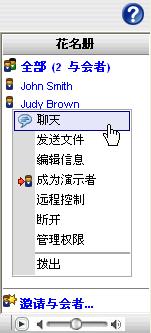 注释:如果看不到与会者花名册,则说明演示者尚未授予您发送聊天消息的权限。