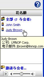 “与会者花名册”底部是“邀请与会者”按钮;该按钮可用于发送包含超级链接的电子邮件邀请,收件人单击该链接便可进入会议